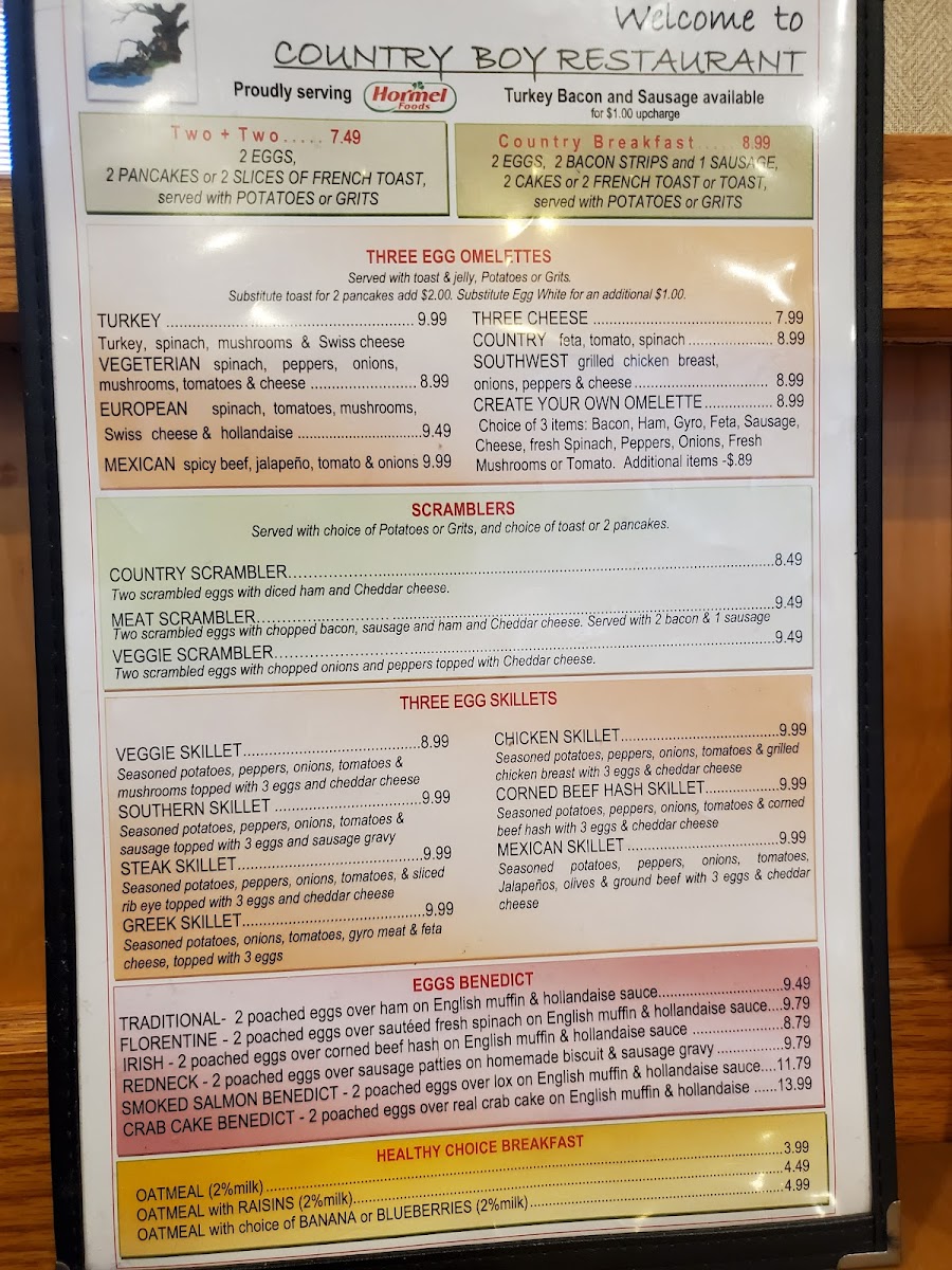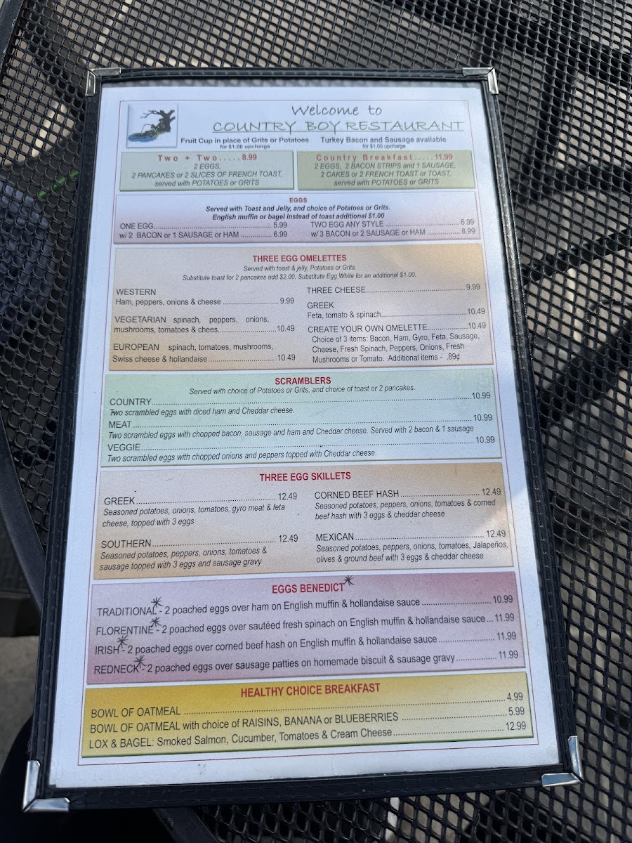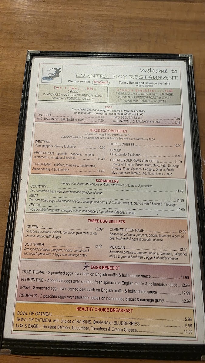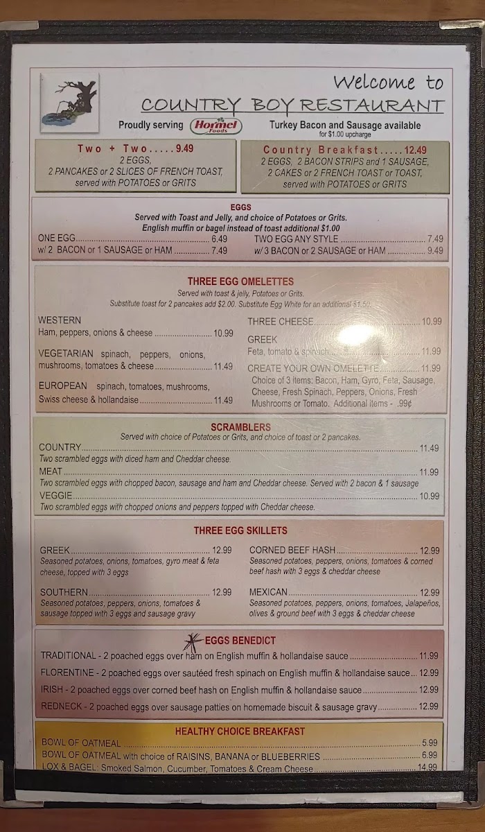 Seasoned potatoes, peppers, onions, tomatoes, and sliced rib eye topped with three eggs and cheddar cheese.