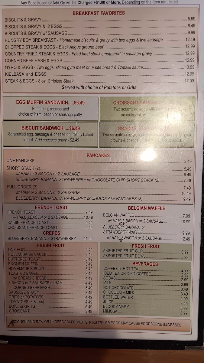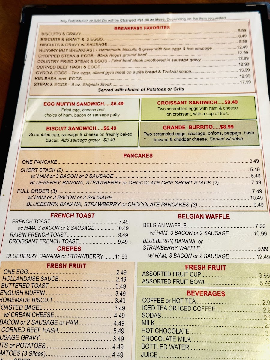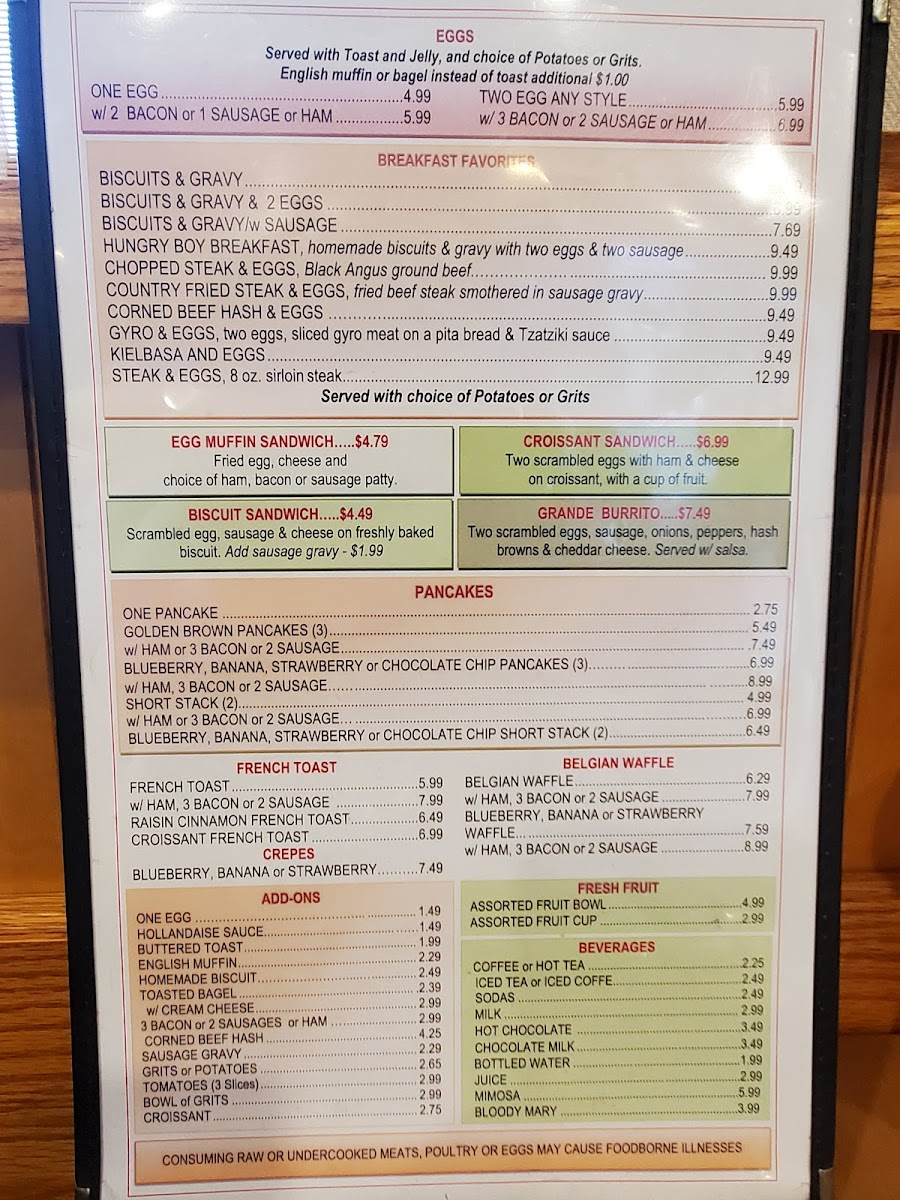 Seasoned potatoes, onions, tomatoes, gyro meat and feta cheese, topped with three scrambled eggs.